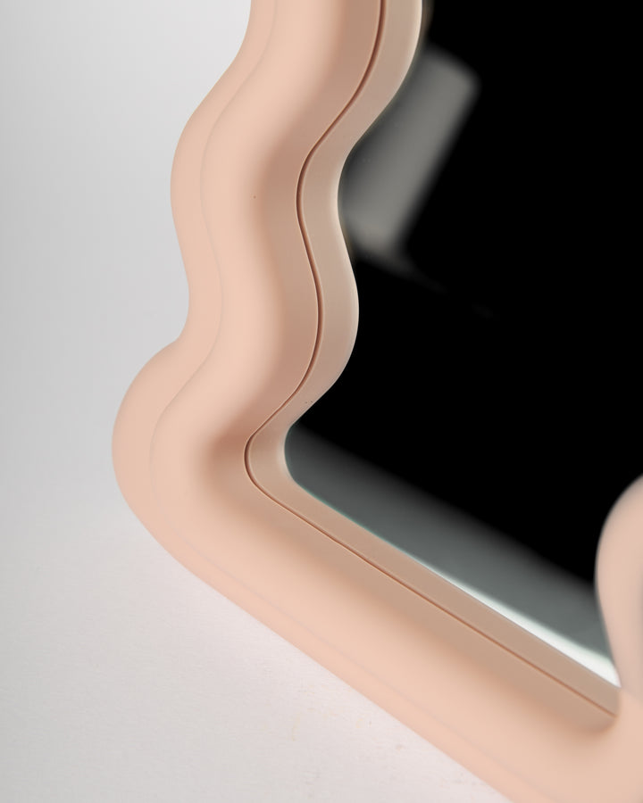 Specchio onda – con cornice irregolare a onde, disponibile in rosa cipria e crema