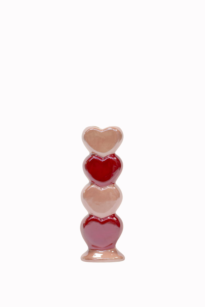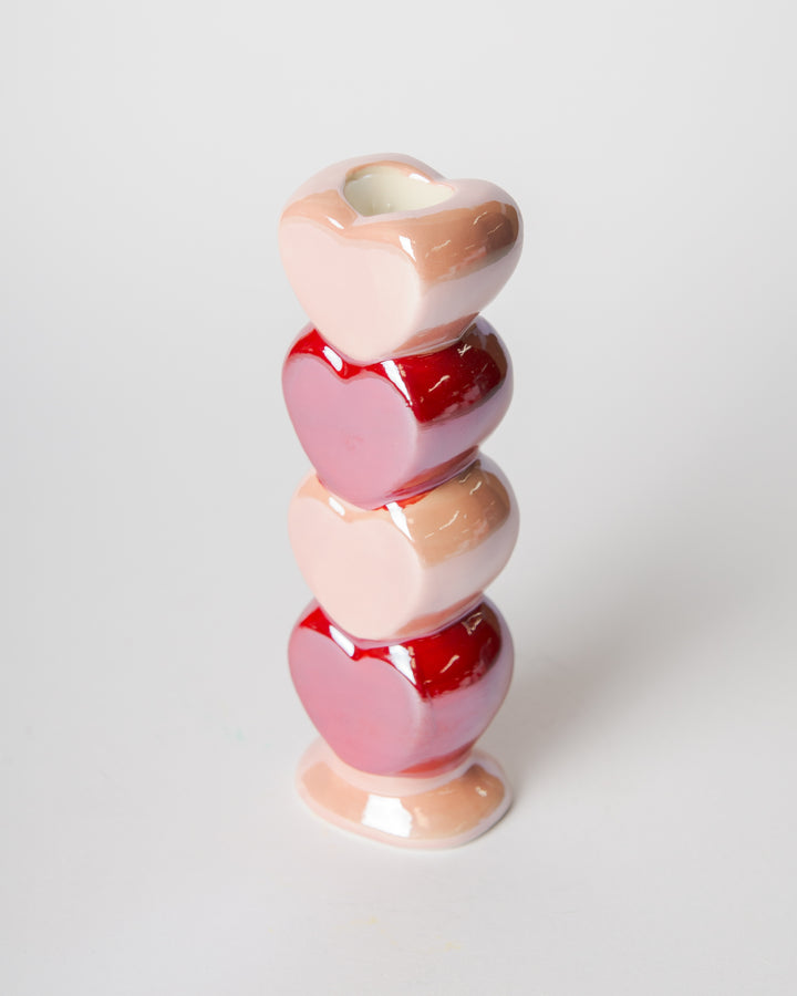 Realizzati in ceramica smaltata, i portacandele Sweet Bloom si distinguono per la loro forma a cuori sovrapposti. Disponibili in combinazioni di colori pop e femminili, accolgono candele stick per creare atmosfere accoglienti e luminose.