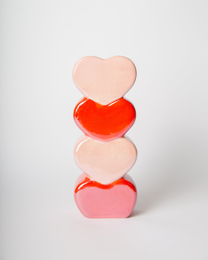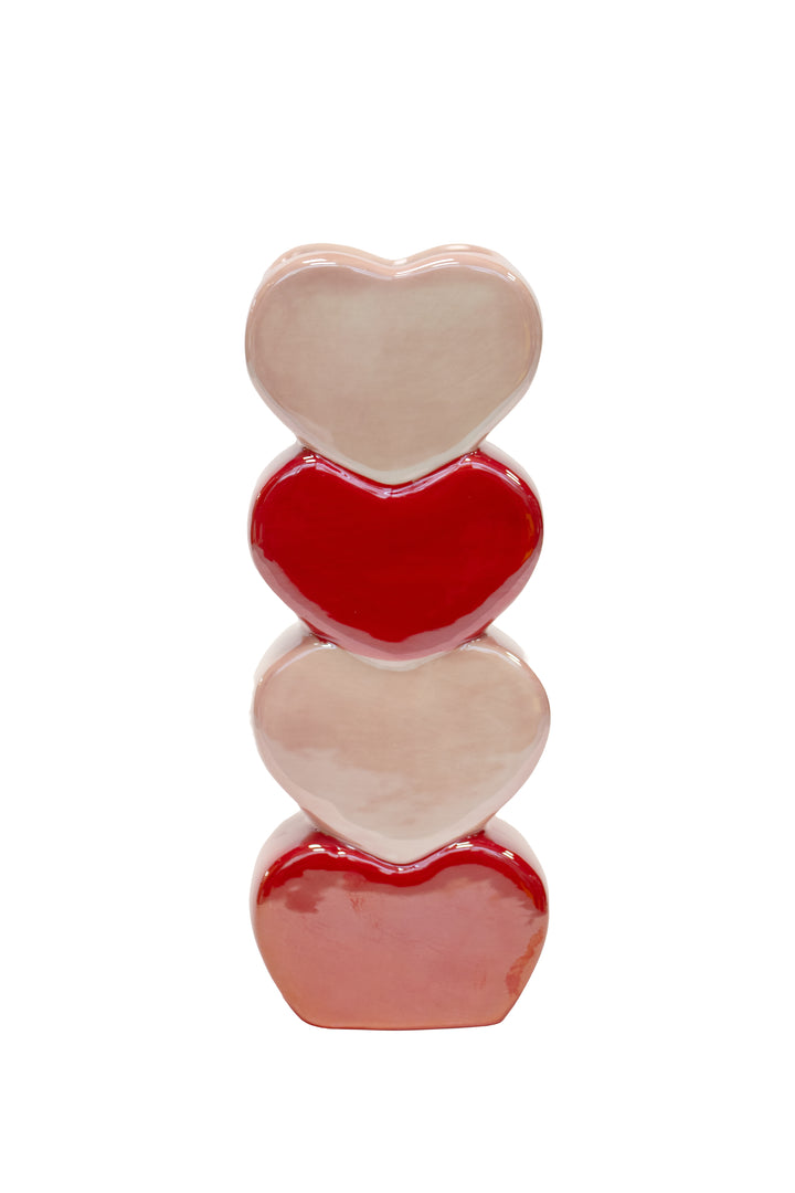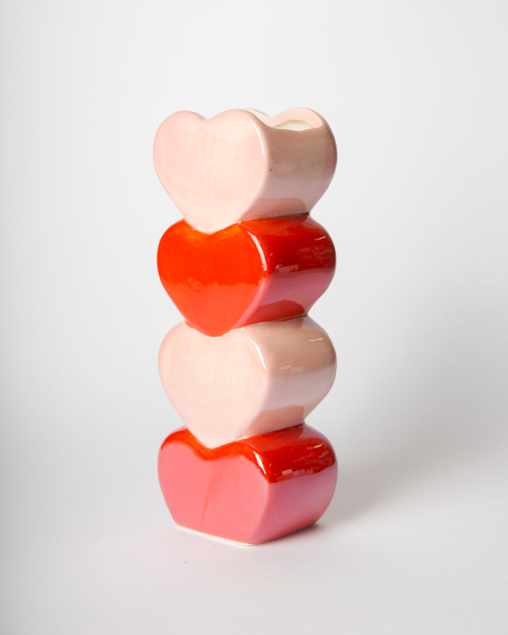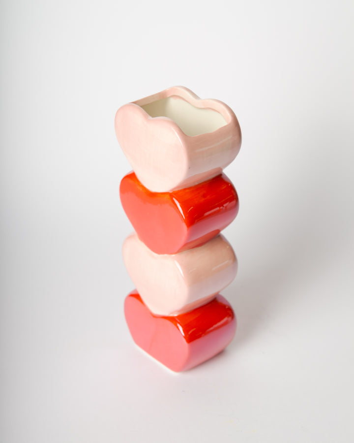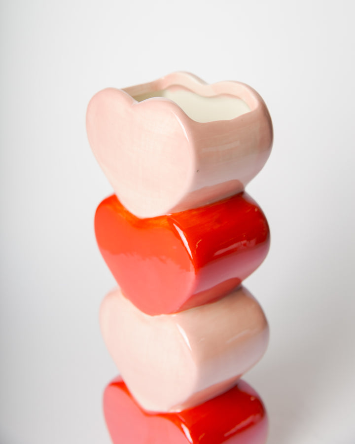 Romantici e scenografici, i vasi Sweet Bloom sono composti da una torre di cuori smaltati. Possono contenere fiori veri o artificiali e sono perfetti come centro tavola o decorazione da mensola.
