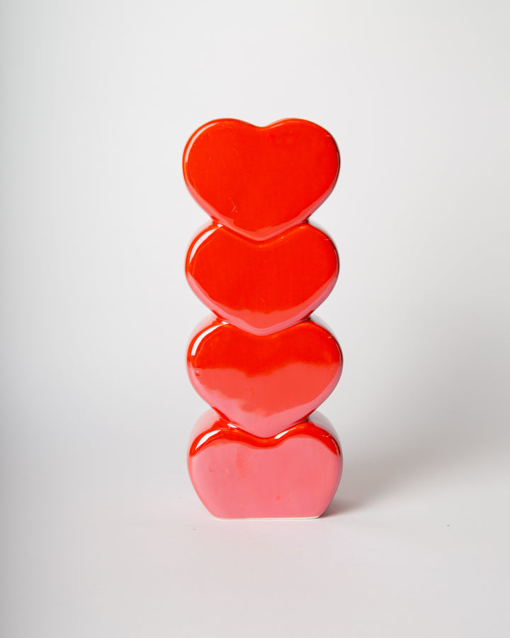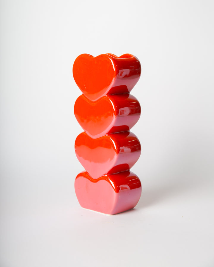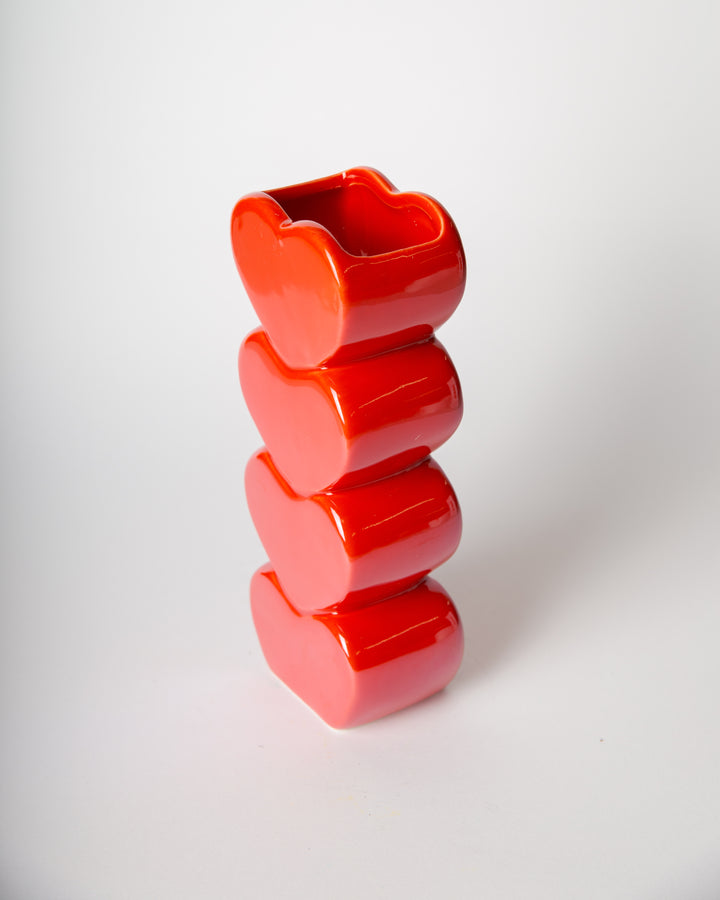 Romantici e scenografici, i vasi Sweet Bloom sono composti da una torre di cuori smaltati. Possono contenere fiori veri o artificiali e sono perfetti come centro tavola o decorazione da mensola.